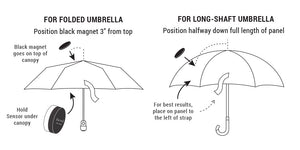 For best results, follow below placement for sensor, depending on whether you have a compact folded umbrella or long-shafted umbrella: